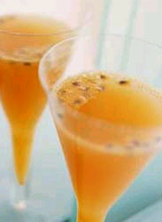 Cortar el maracuyá (fruta de la pasión) por mitad, extraer la pulpa y licuarla. Prender y apagar rápidamente la licuadora 2 a 3 veces para que la pulpa se desprenda de las semillas.